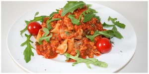Pasta Mediterraneo mit Oliven, Tofu, Kapern und Rucola2