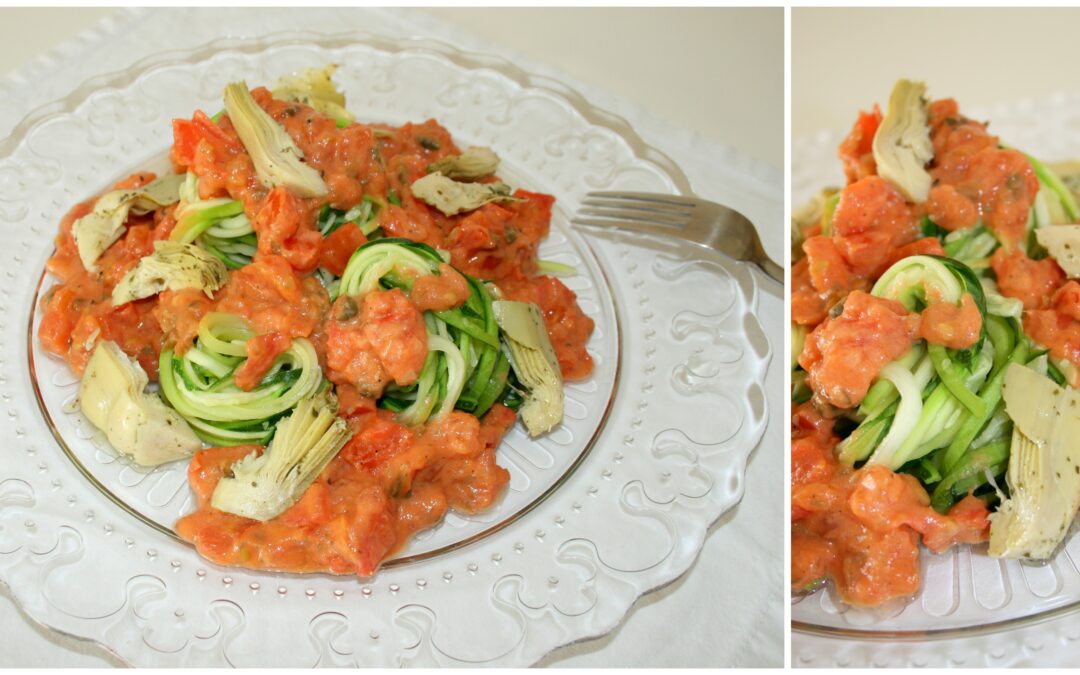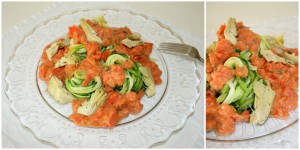 Zucchininudeln mit Tomaten-Mandelcreme und Artischocken1