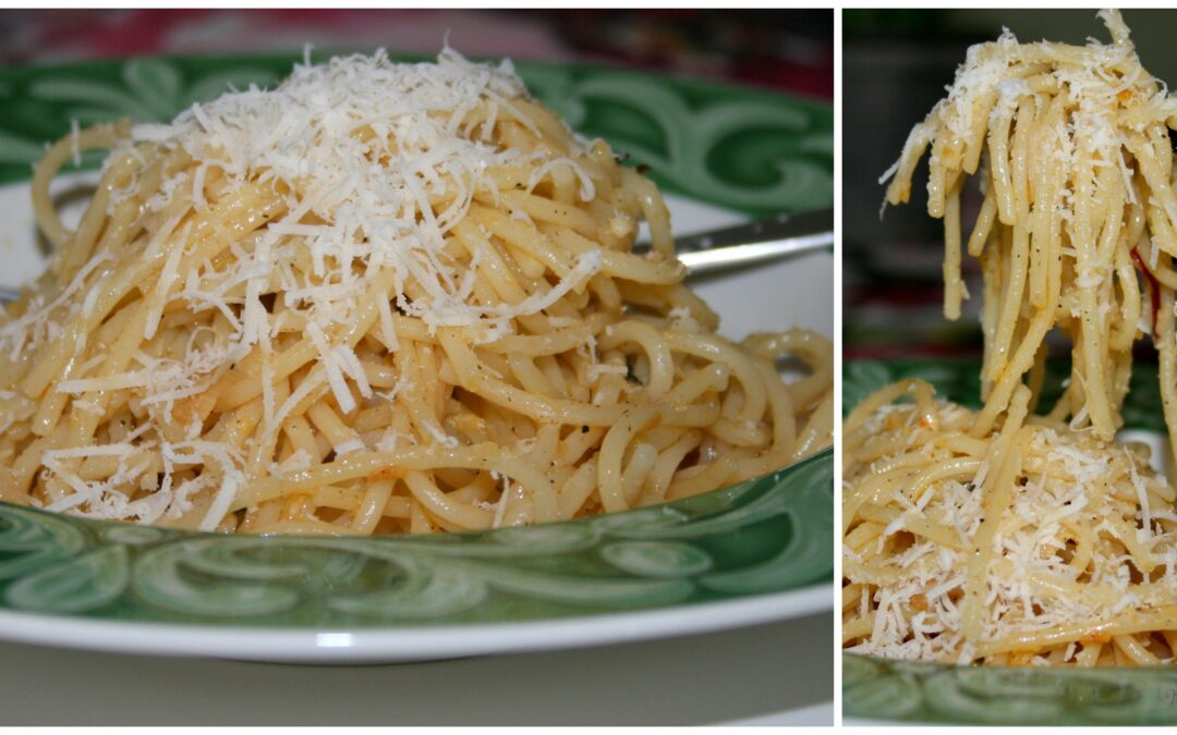 Parmesan- Spaghetti in Zitronen-Knoblauch-Chili-Öl