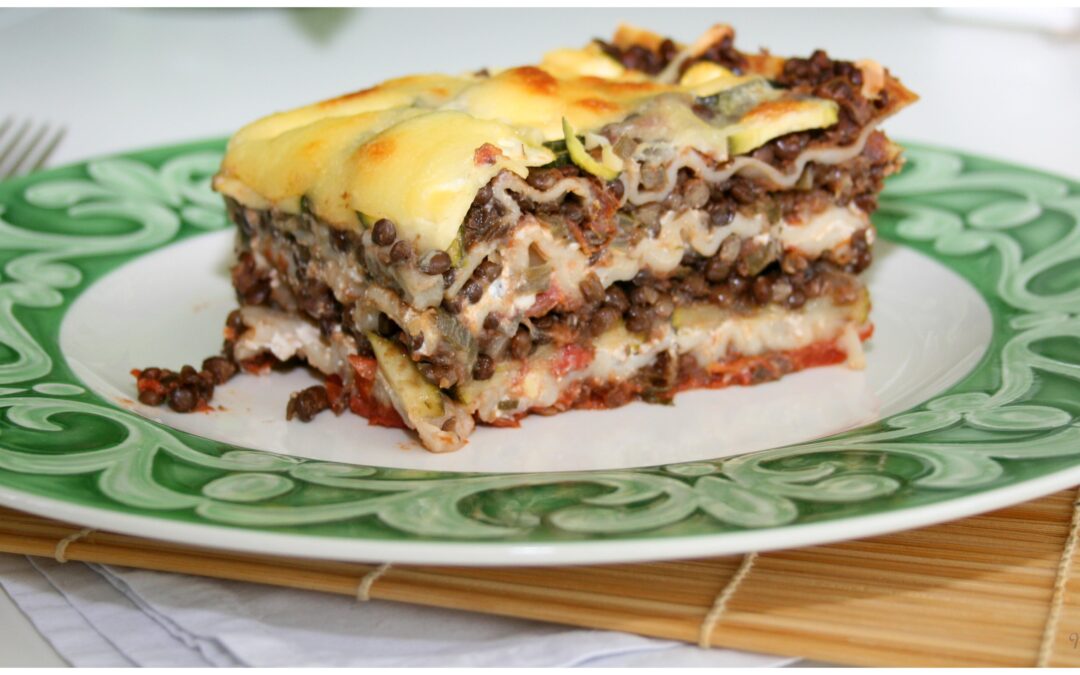 Lasagne mit Belugalinsen, Zucchini und Ricotta