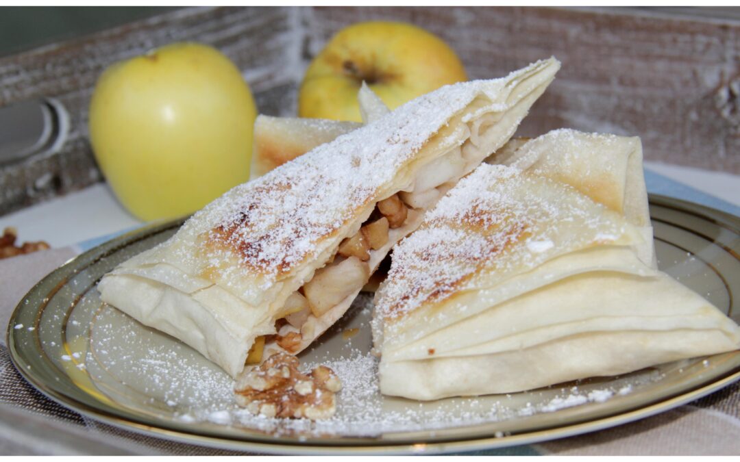 Schnelle vegane Mini-Apfelstrudel aus Filoteig mit Vanillesauce (1)