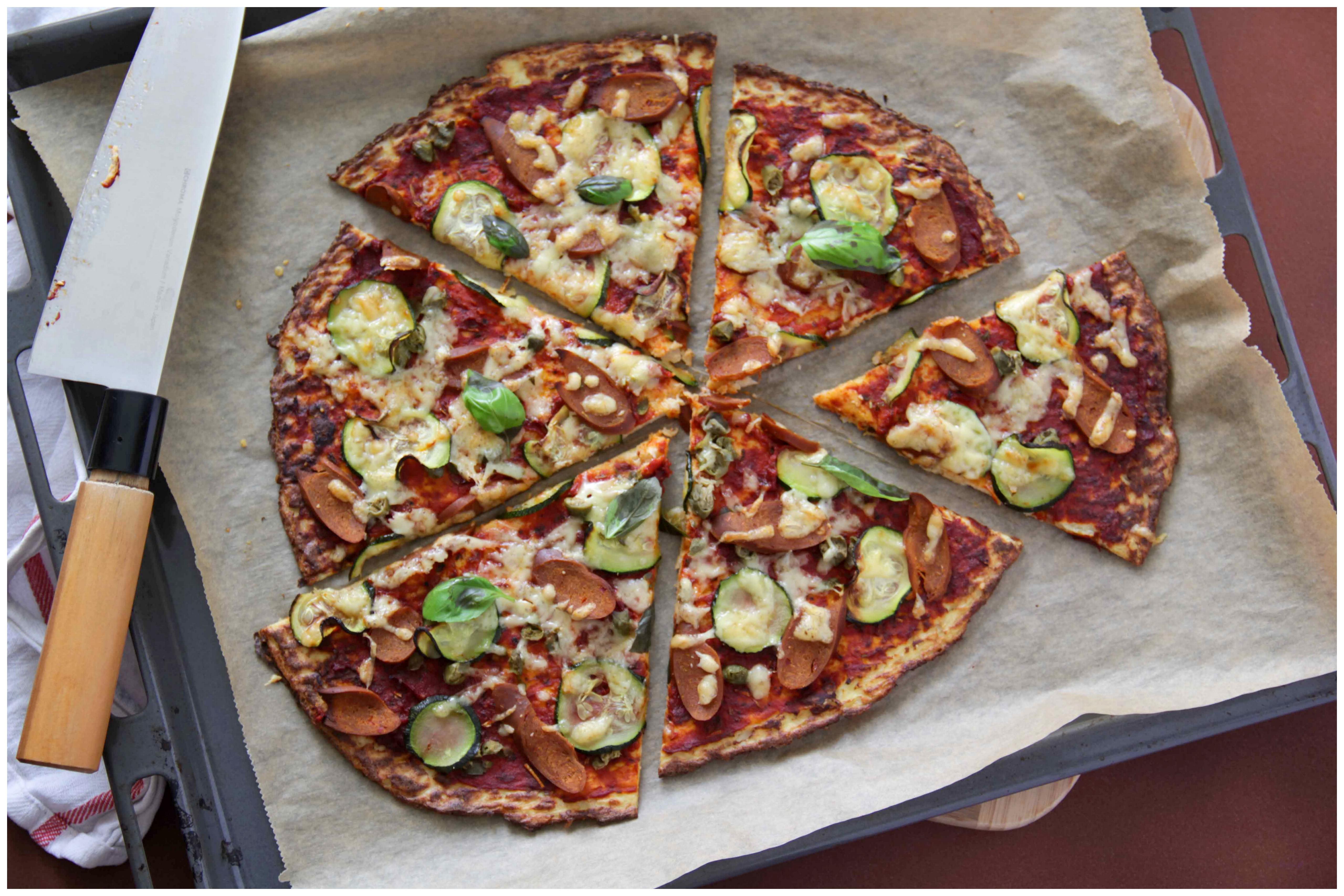 Sicher ist es nicht verkehrt, ab und zu mal Kohlenhydrate wegzulassen oder zu reduzieren, vor allem, wenn man wie beim Pizzaboden Weißmehl durch Gemüse ersetzen kann, das zudem kaum Kalorien hat.
