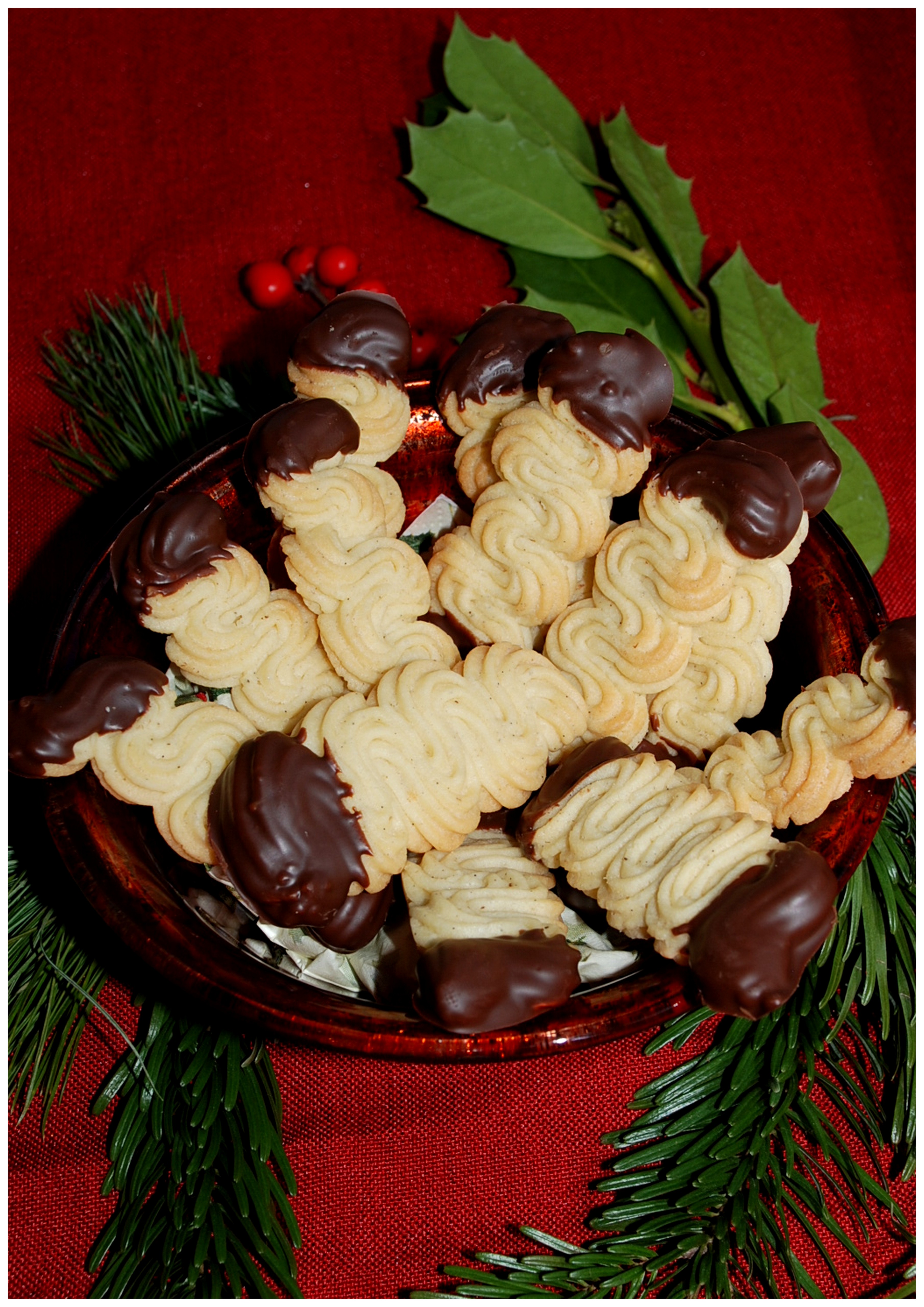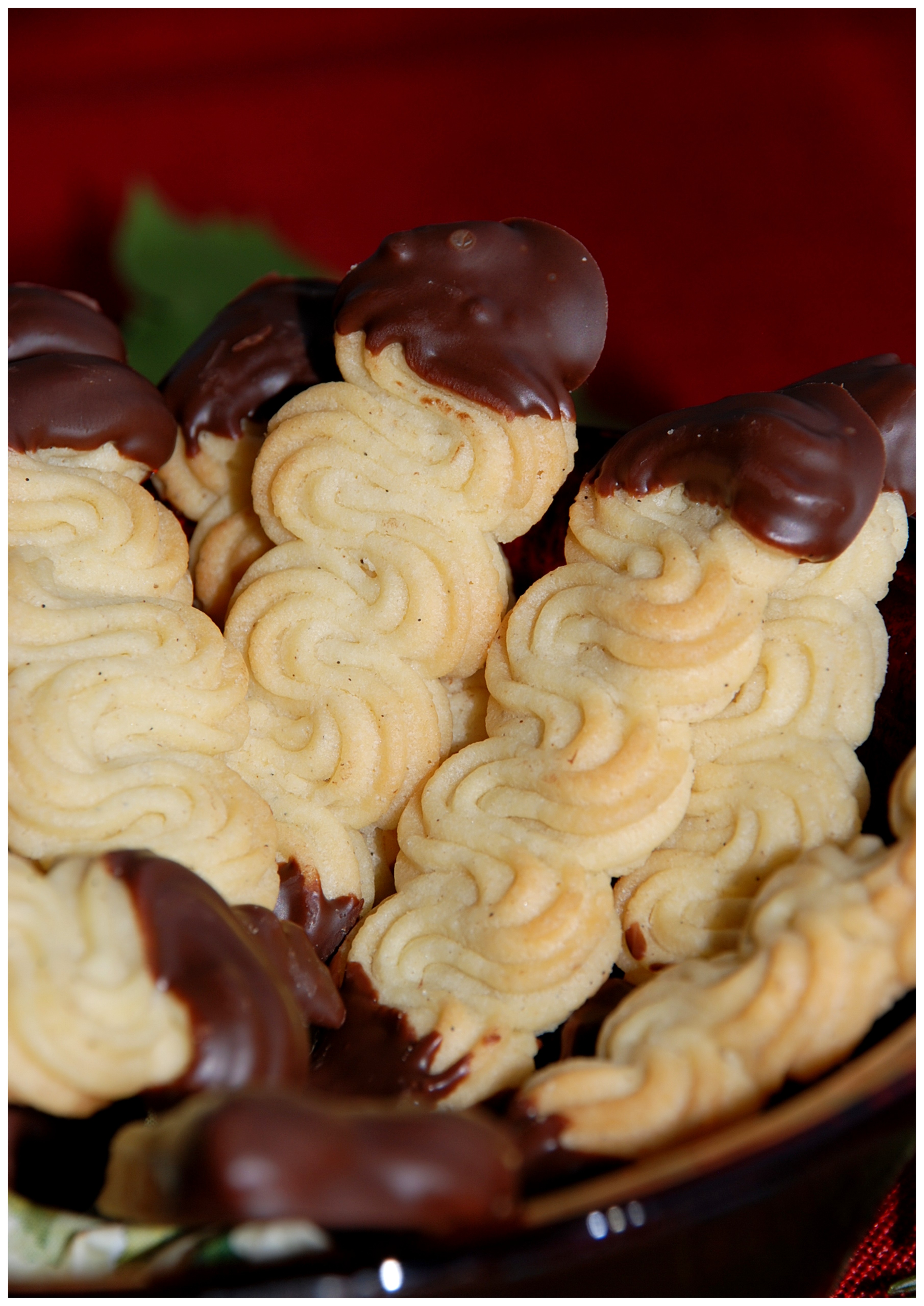 Das Rezept habe ich bei lykkelig geklaut und finde es absolut super! Der Teig war wunderbar weich und ließ sich einwandfrei spritzen und die Plätzchen sind mürbe und aromatisch.