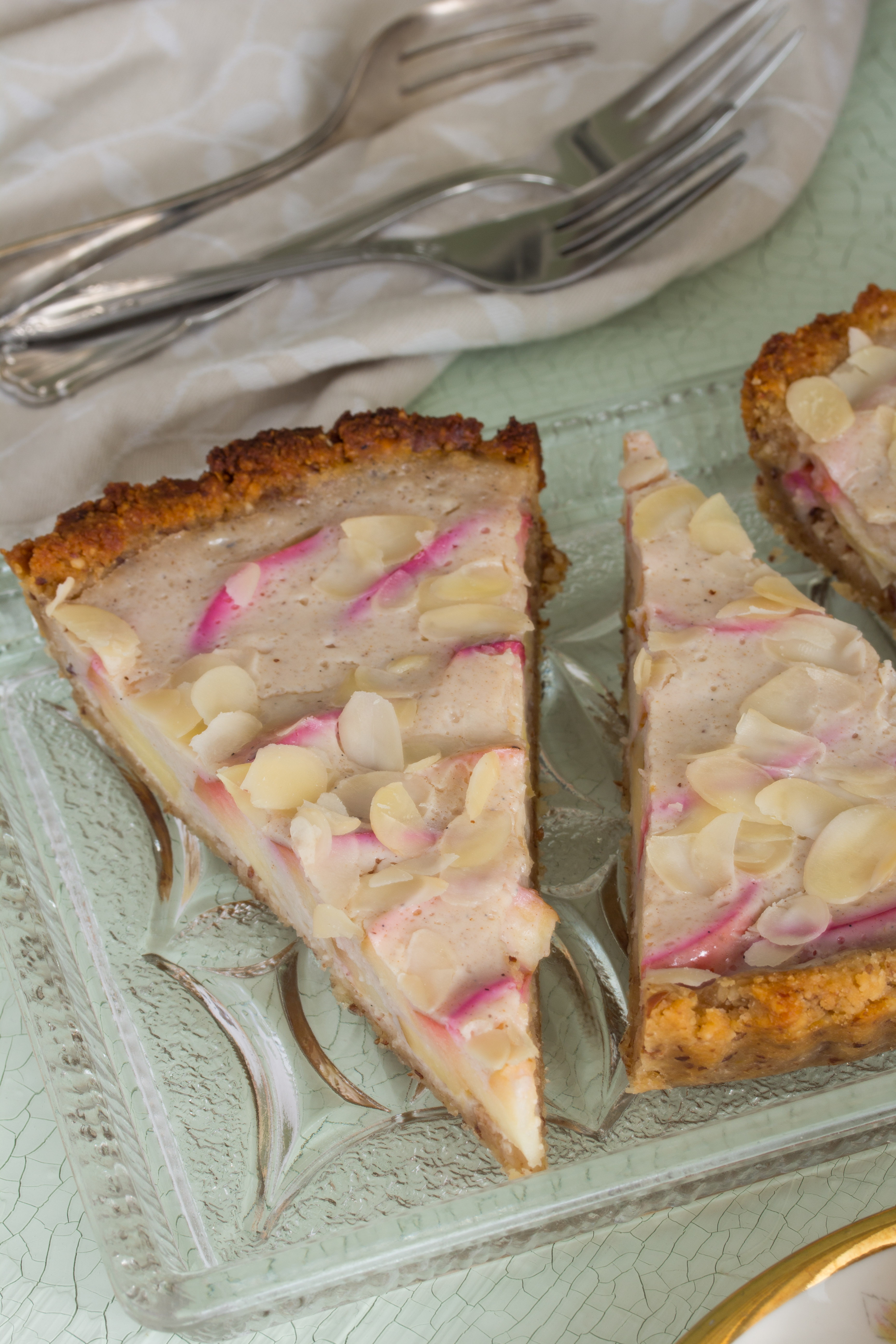 Wer Marzipan nicht mag, kann den Kuchen natürlich auch mit einem normalen Mürbteigboden machen! Dafür könnt ihr zum Beispiel dieses Rezept für einen veganen Mürbteig mit Dinkel(Vollkorn)Mehl nehmen.