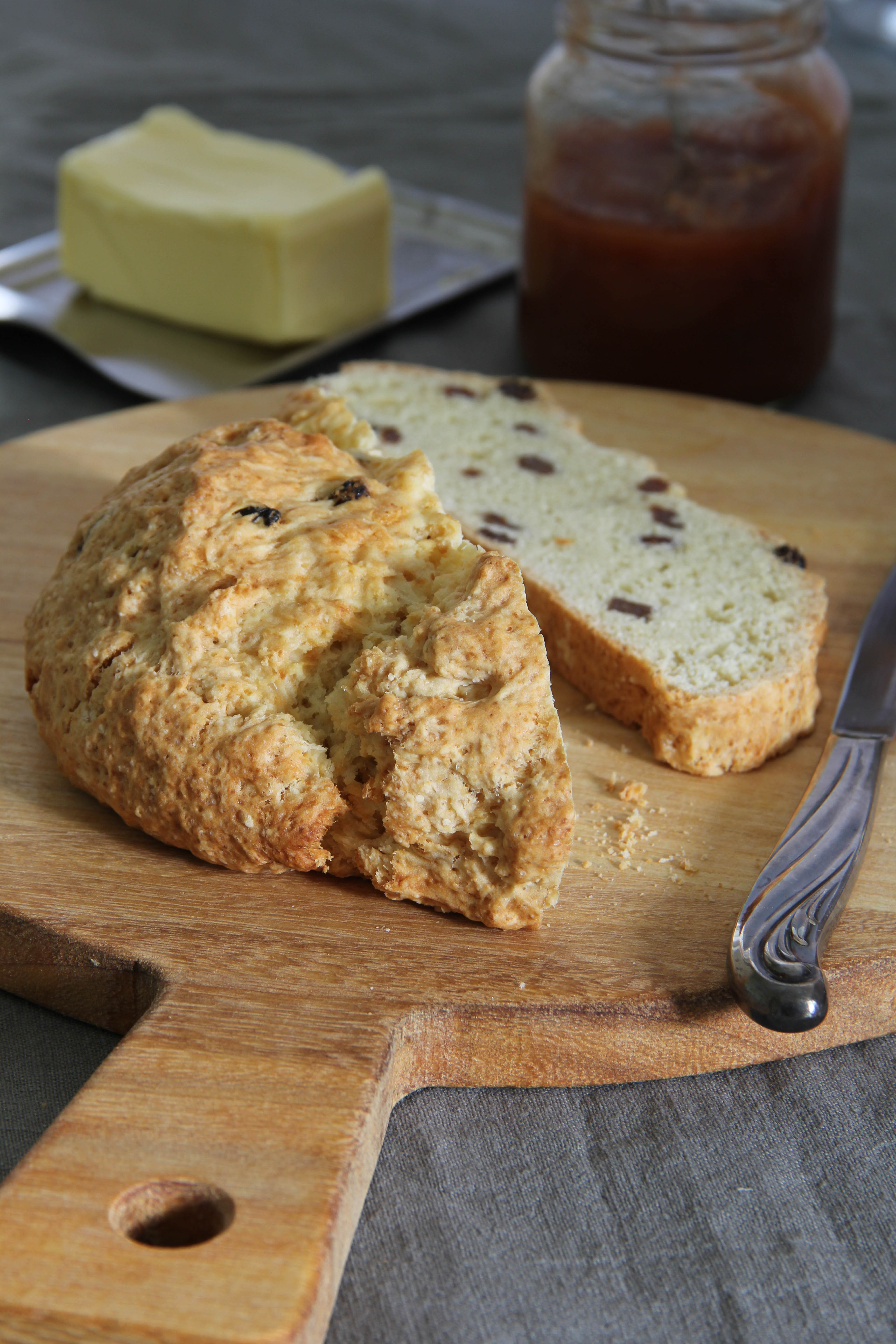 Dabei ist dieses Brot mit leichter Süße und Rosinen darin (wer sie nicht mag, lässt sie weg) perfekt fürs Frühstück oder zum Kaffee. Sehr lecker schmecken dazu auch Butter und eine Konfitüre, dann ist das Ganze ein bisschen wie ein Scone.
