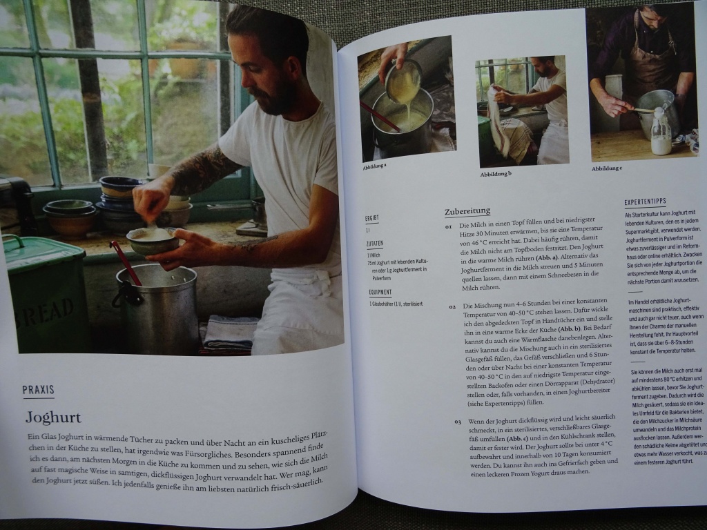 Unbedingt ausprobieren möchte ich das Ginger Beer, denn ich liebe Ingwer und Ingwerbier auch. Mein erstes habe ich vor vielen Jahren in Südafrika getrunken. Joghurt selbermachen klingt ebenfalls machbar, das steht auf meiner Liste. Und die köstlich aussehenden Brote mit Sauerteig werden definitiv mal getestet! Süß-sauer eingelegtes Gemüse klingt nach einer tollen Möglichkeit, sich ein bisschen Sommer zu konservieren und irgendwann möchte ich mal lernen, wie man Käse selbst herstellt – am liebsten aber in einer kleinen Käserei (auf einer Alm). Immerhin kann ich mich hier jetzt schon ein bisschen einlesen.