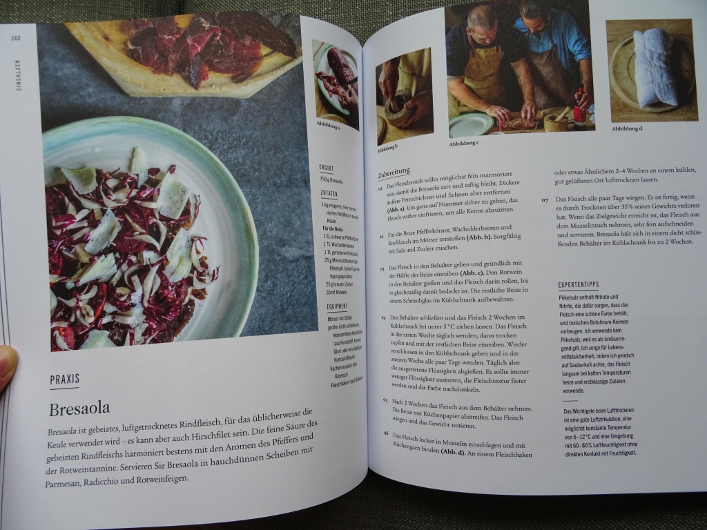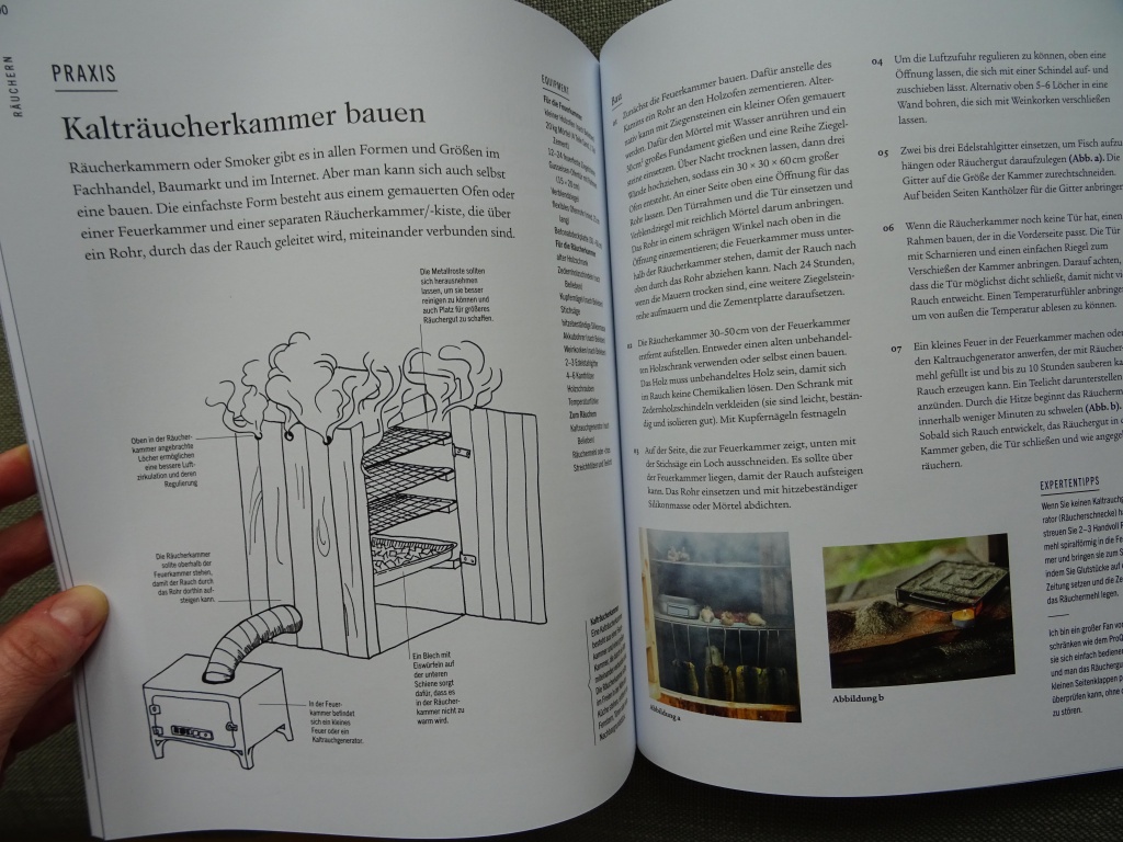 Ich finde, für jede Ambition ist etwas dabei. Einfachere Sachen wie das Confieren (Garen in Öl oder Schmalz) oder selbstgemachten Graved Lachs bekommt sicher jeder hin. Fürs Räuchern braucht es dann sicher etwas mehr Vorbereitung und vor allem Ausstattung. Aber auch hier hilft James weiter, denn er verrät eine Anleitung zum Bau einer Kalträucherkammer. Sogar für Outdoor-Köche finden sich am Ende des Buchs einige Rezepte zum Kochen über Feuer, mit einem Erd- oder einem selbstgebauten Lehmofen.