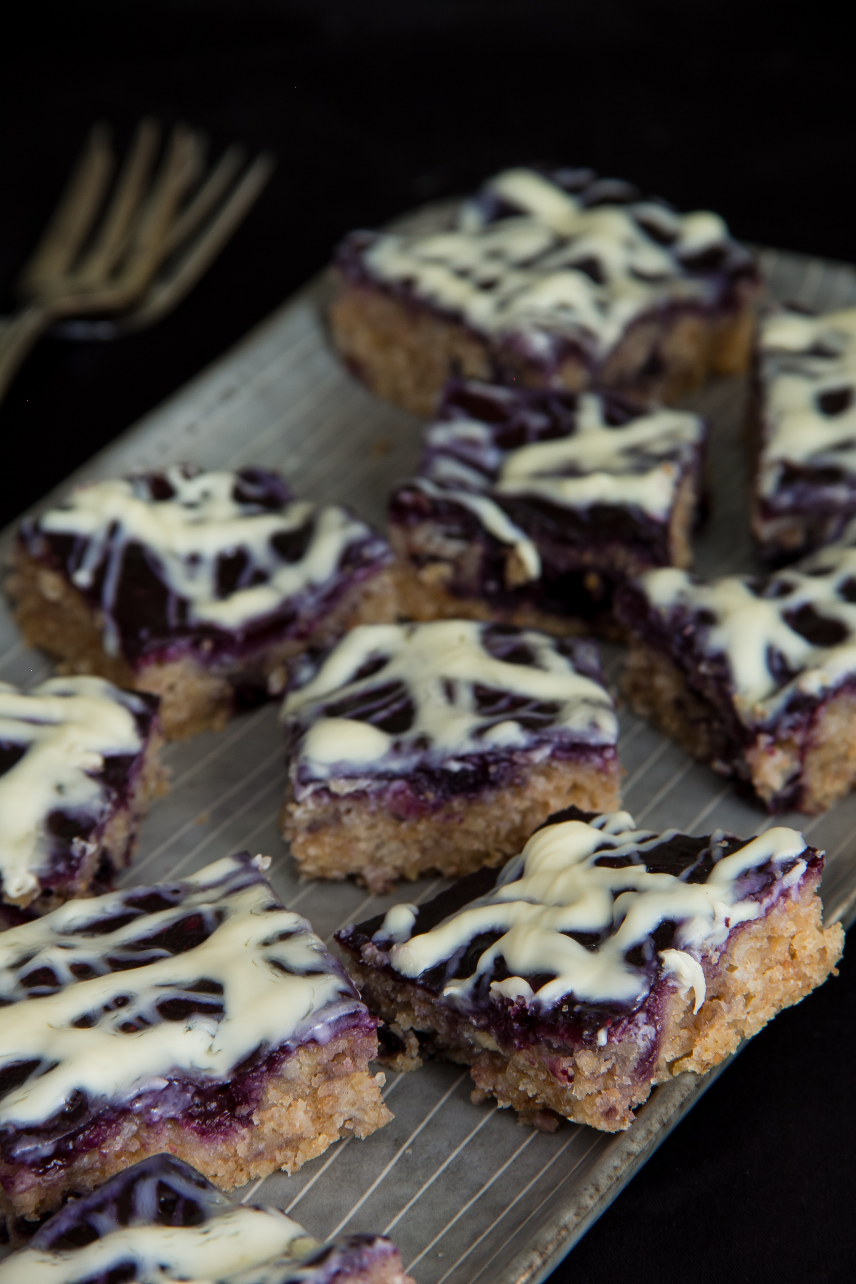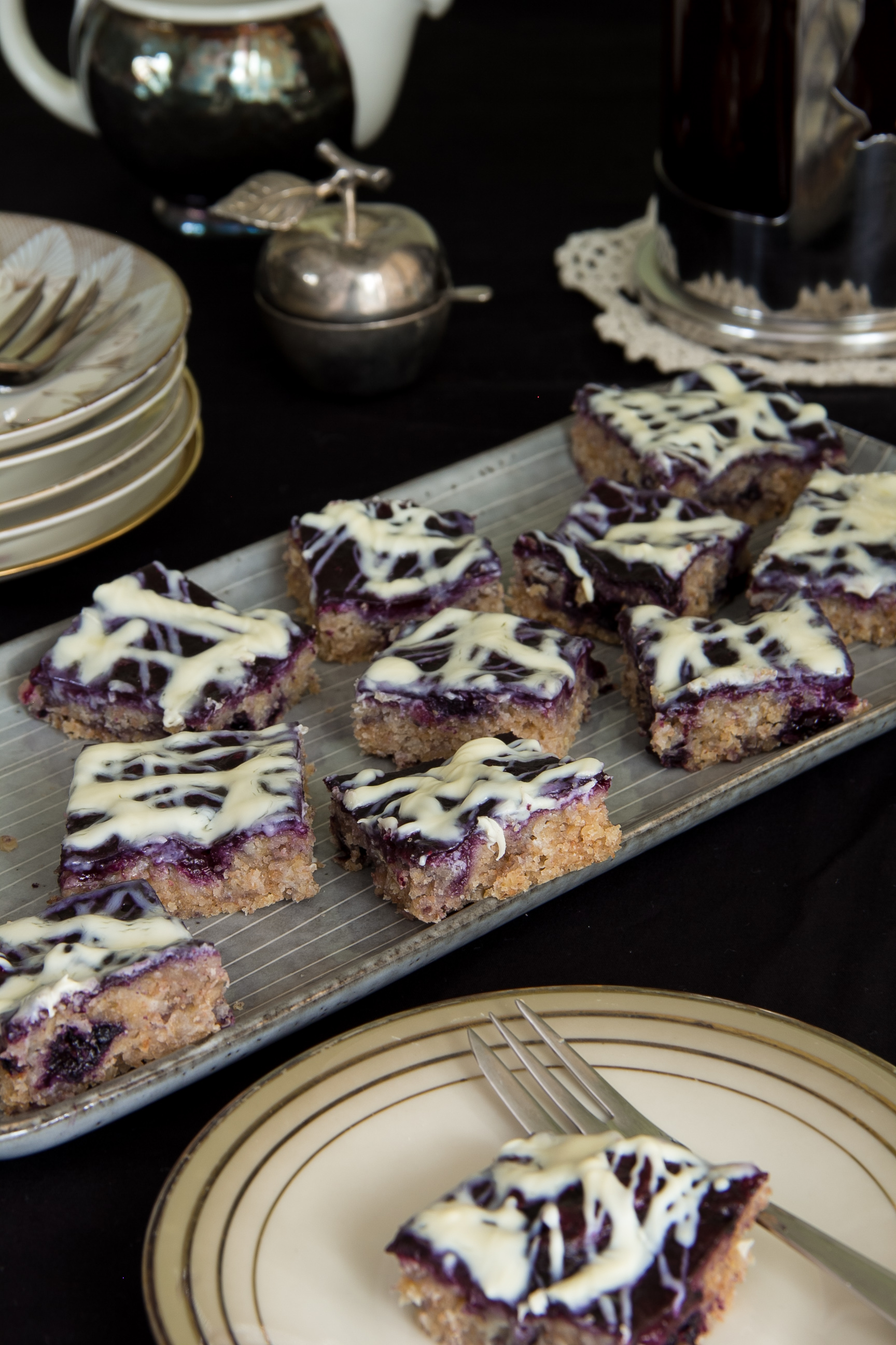 Diese Heidelbeer-Schnitten habe ich diese Woche zum zweiten Mal gebacken. Das erste Mal waren sie zu schnell aufgefuttert. Und sonderlich fotogen fand ich sie auch nicht. Zwei gute Gründe also, sie noch einmal zu backen und gleich noch ein bisschen zu optimieren.