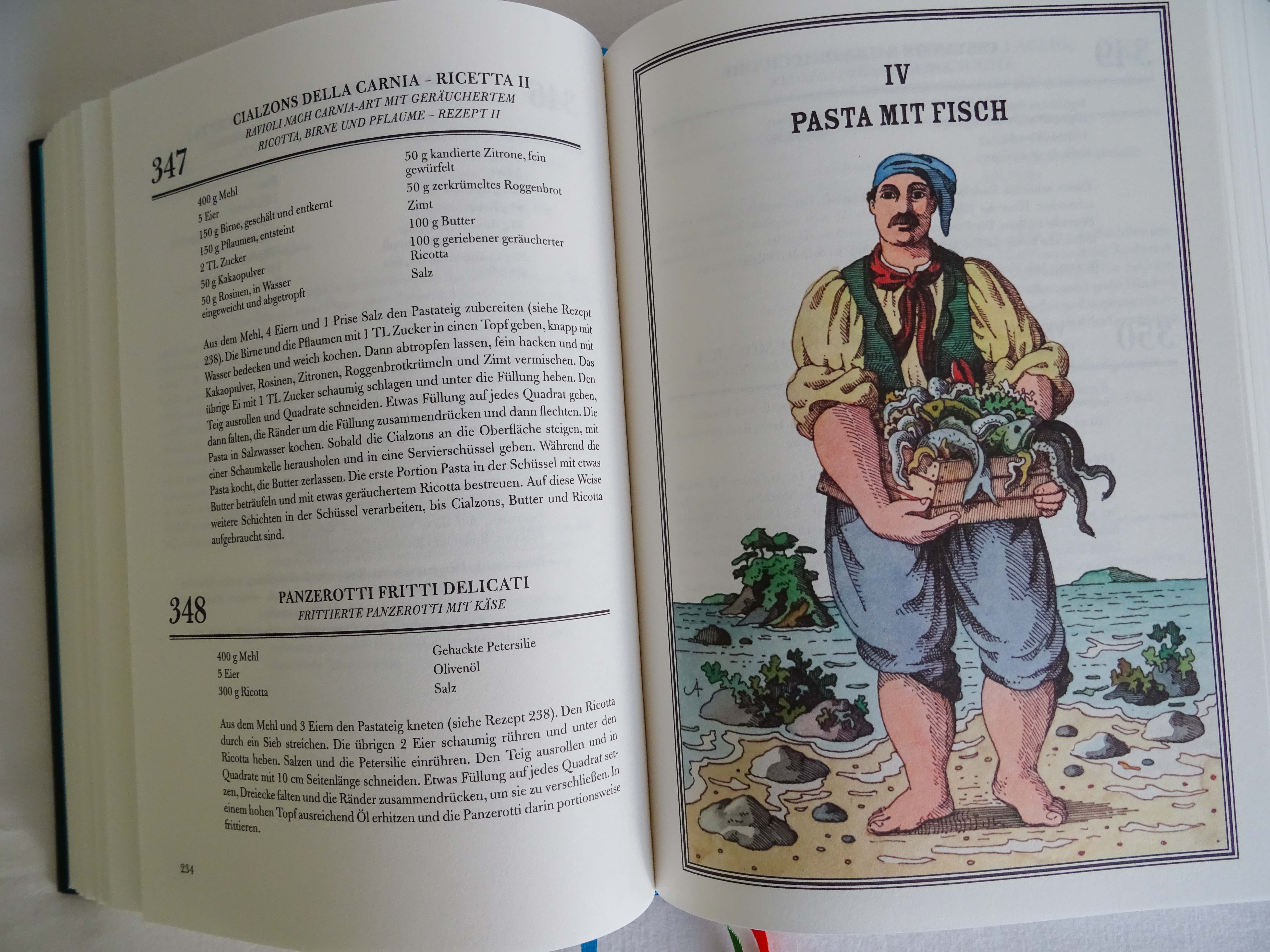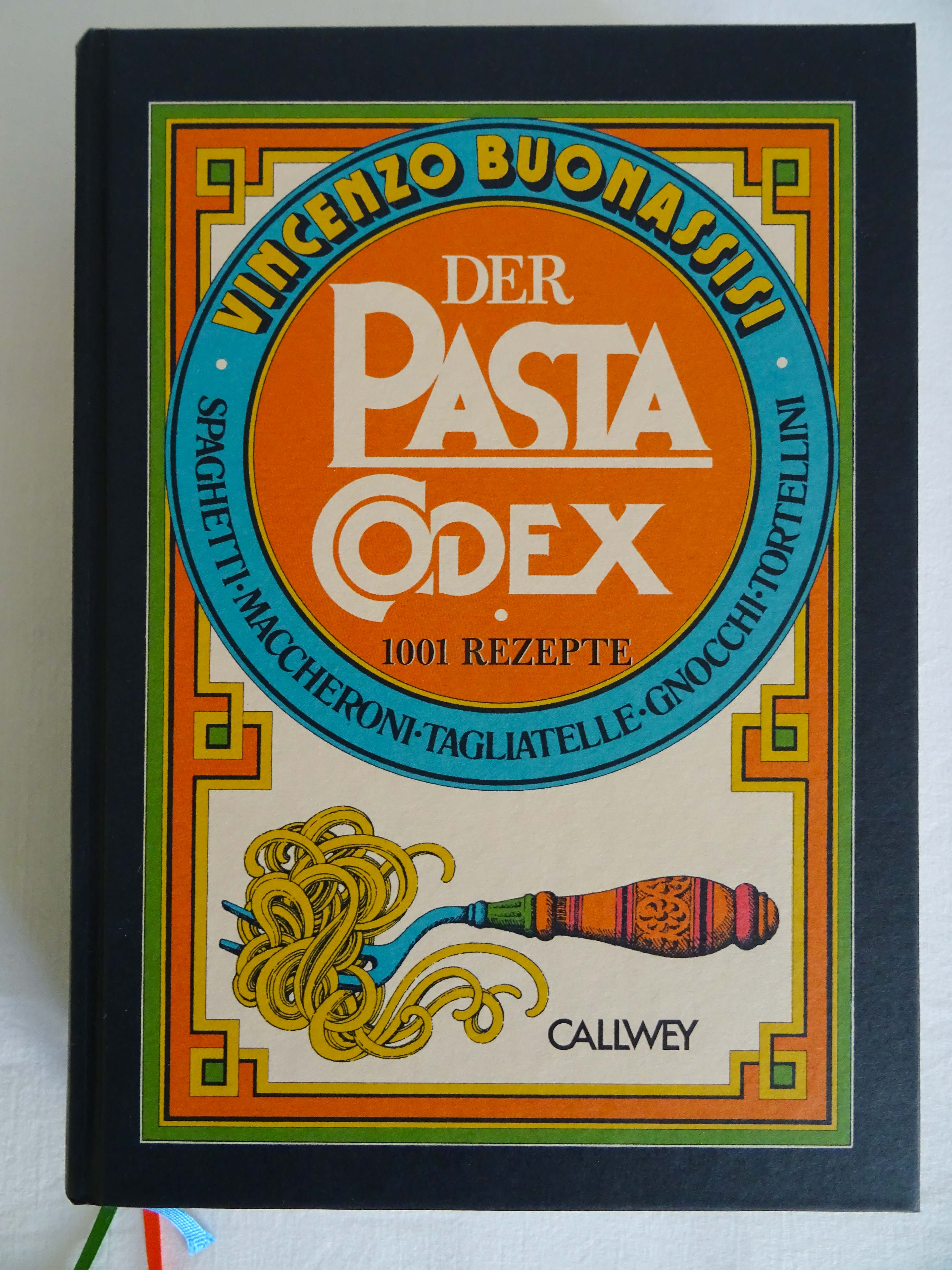 Heute habe ich das erste Mal ein Rezept aus dem Pasta Codex gekocht. Das Buch hatte ich diesen Winter übersetzt. Der Codex mit 1001 Pasta-Rezepten wurde Anfang der 1970er Jahre von Guido Buonassisi verfasst. Dass man hier ein historisches Dokument in der Hand hält, merkt man bereits am Cover: das strahlende Orange dieses Jahrzehnts, kombiniert mit Grün und Blau, macht sofort gute Laune.