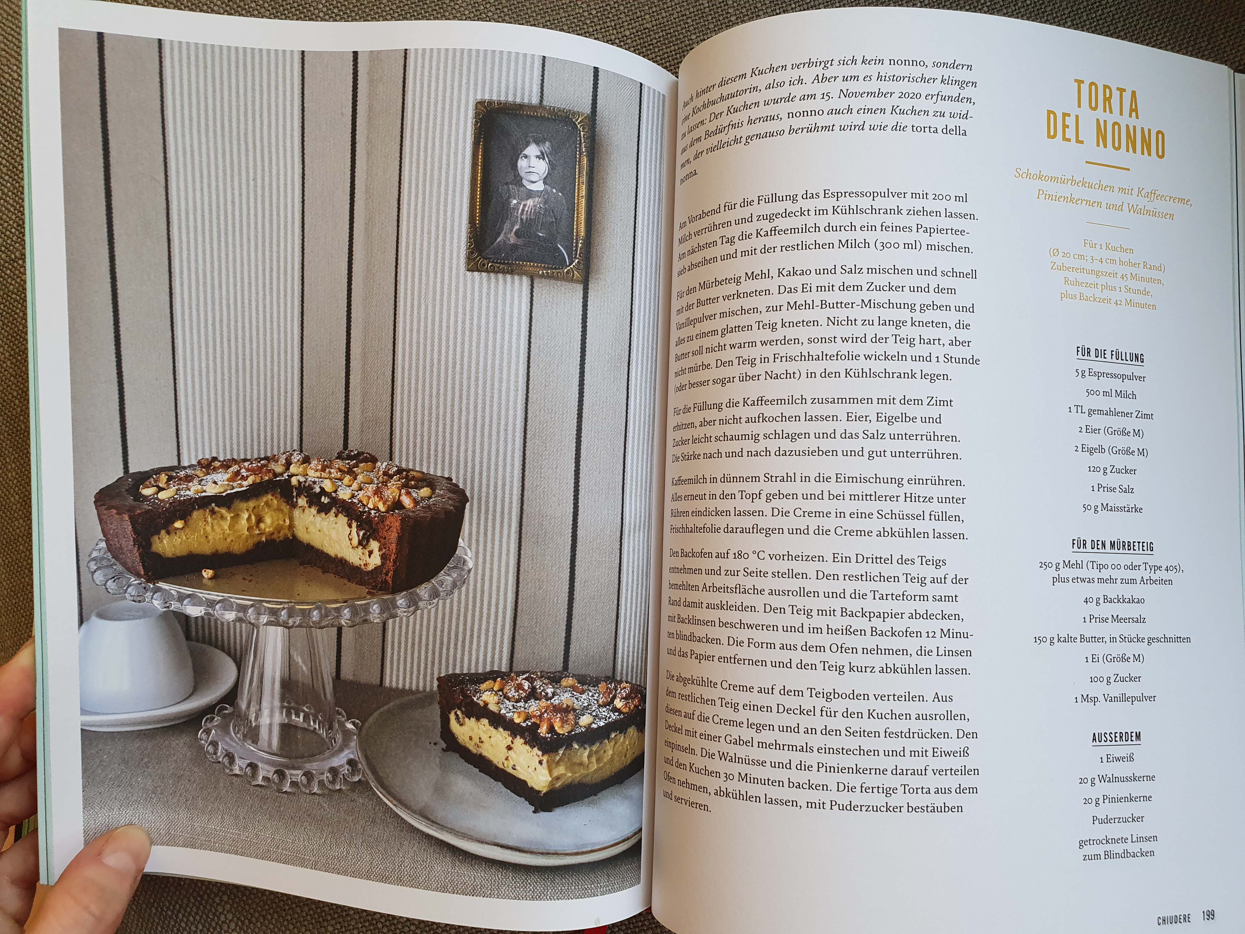 Auf jeden Fall macht es Spaß, in „TOSKANA in meiner Küche“ zu schmökern und ganz sicher werde ich die „Torta del nonno“, das von der Autorin kreierte Pendant zur „Torta della nonna“ ausprobieren: Schokomürbekuchen mit Kaffeecreme, Pinienkernen und Walnüssen.