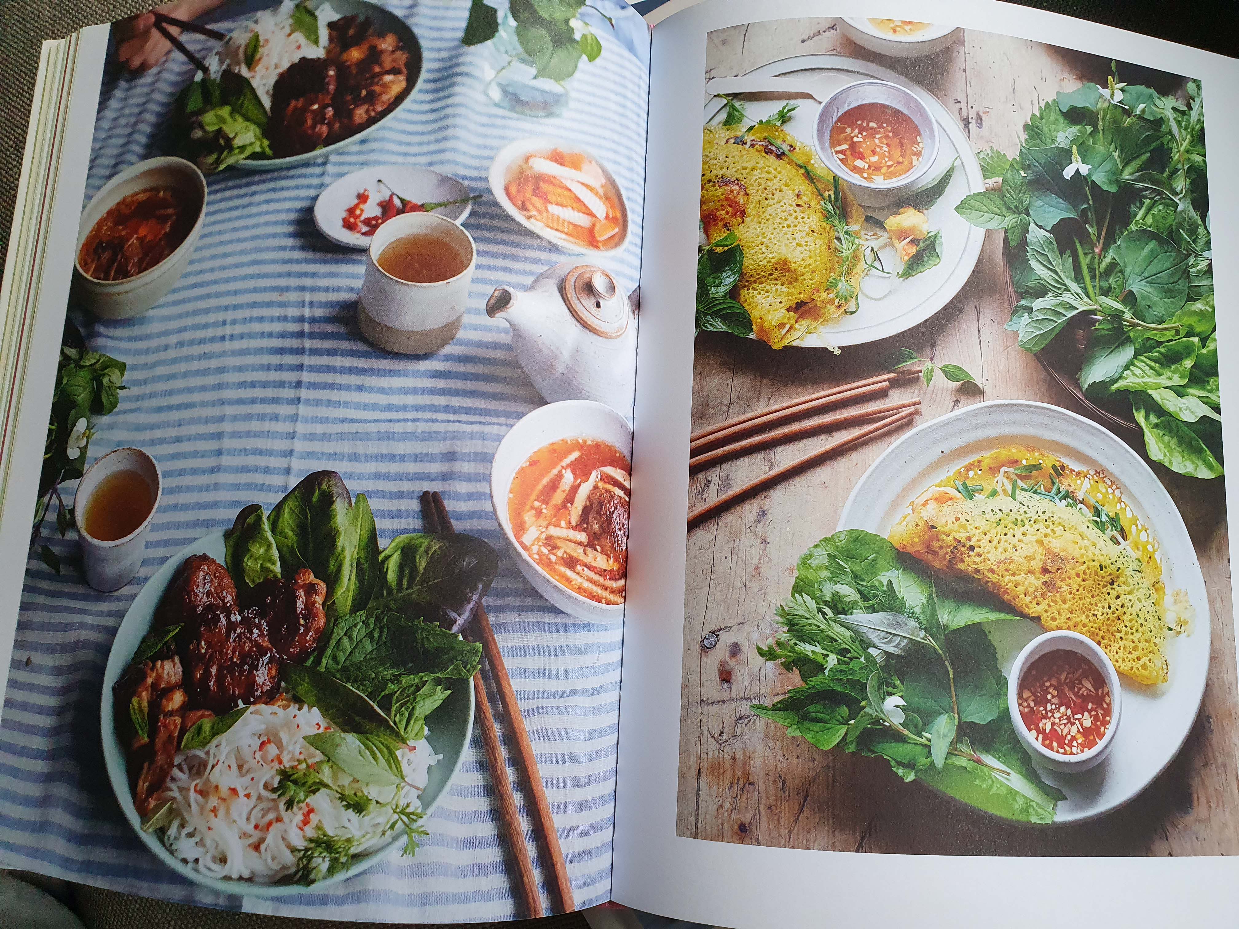 Man sieht mit einem Blick die Vielfalt und Leichtigkeit dieser Küche: viel Gemüse, Salate, Nudelsuppen mit diversen Einlagen und natürlich auch Süßes für die Naschkatzen. Bei den „Grundlagen“ findet man Tipps zum Einweichen und Verarbeiten von Reisnudeln, Rezepte für selbstgemachte Pommes frites oder Nudeln, für selbst verfeinerte Saucen und sogar für verschiedene Kräutertees.