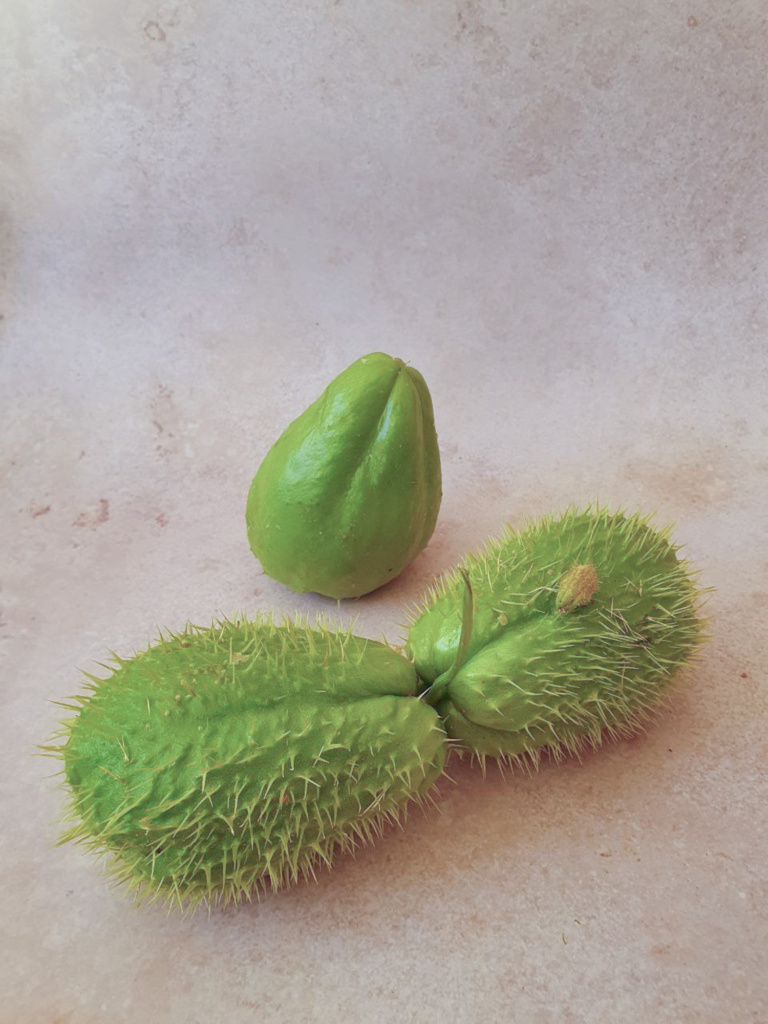 Jedenfalls ist die exotische subtropisch/tropische Frucht reich an Mineralien und Vitaminen und kann sowohl roh als auch gekocht gegessen werden. Manche haben Stacheln, manche sind glatt (die lassen sich natürlich besser verarbeiten).