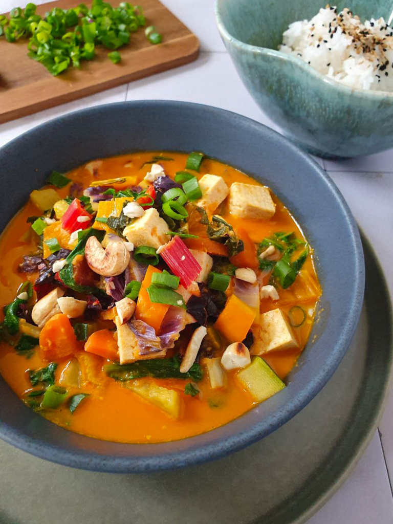 Letzte Woche gab es buntes Curry mit Gemüse von Billy´s Farm. Da konnte man wirklich mal sagen „Eat the rainbow“, denn das Gemüse enthielt alle Farben des Regenbogens und war schon roh ein Augenschmaus.