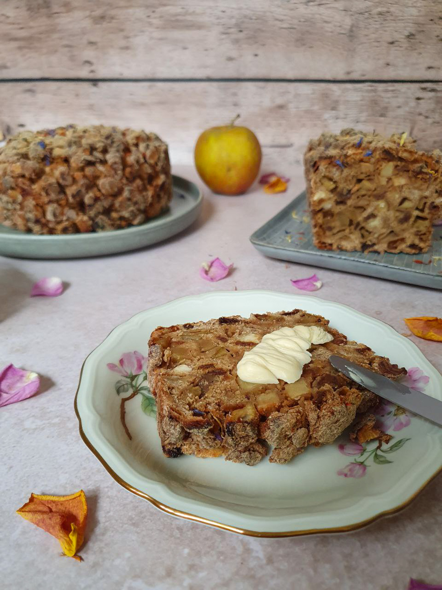 Ich hoffe, euch schmeckt das Apfelbrot auch so gut wie uns und ihr genießt es mit lieben Menschen bei einem gemeinschaftlichen Kaffeekränzchen.