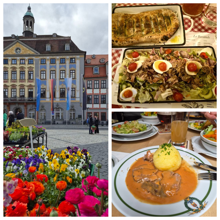 Einmal haben wir abends bei einem Italiener gegessen, der ebenfalls ein schönes Ambiente und leckeres Essen hatte. Unweit der Brücke beim Alten Rathaus liegt Mama Lucia, wo es auch Mittagstisch gibt. Zu meinem großen Salat gab es sagenhaftes Pizzabrot dazu. Die Bedienung war freundlich und aufmerksam.