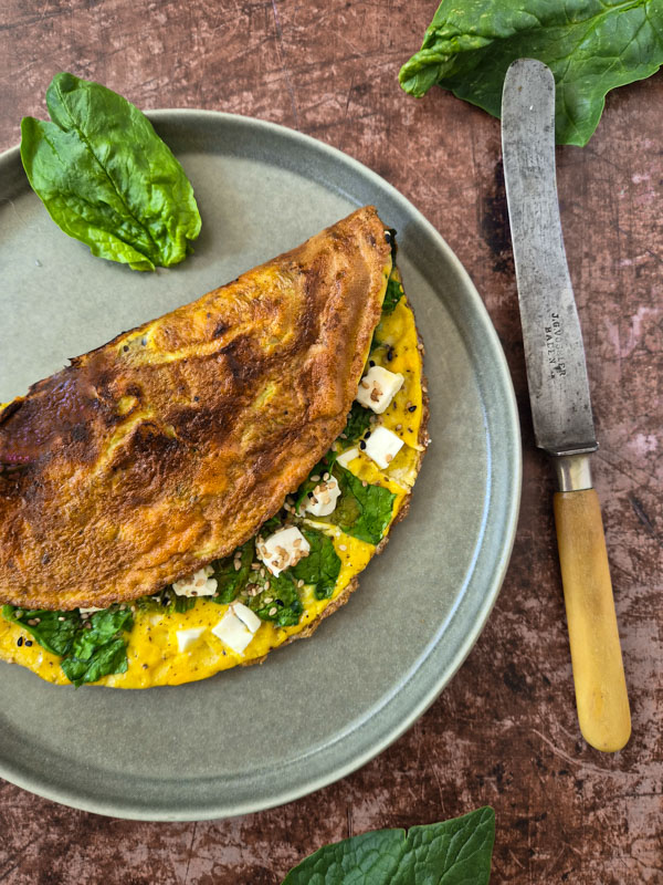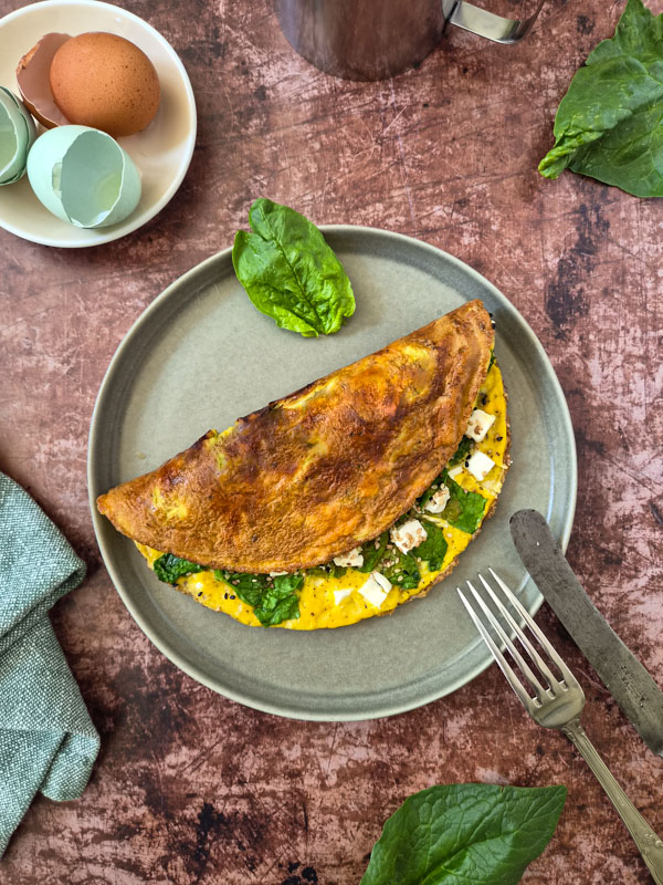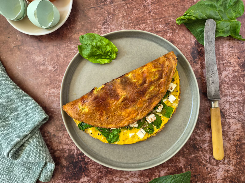 Samstag war ich nach längerem mal wieder auf der Farm einkaufen und habe Eier von Billy mitgenommen, die wirklich besonders gut sind. Außerdem gab es frischen Spinat, der mit Feta als Füllung ins Omelette wanderte.