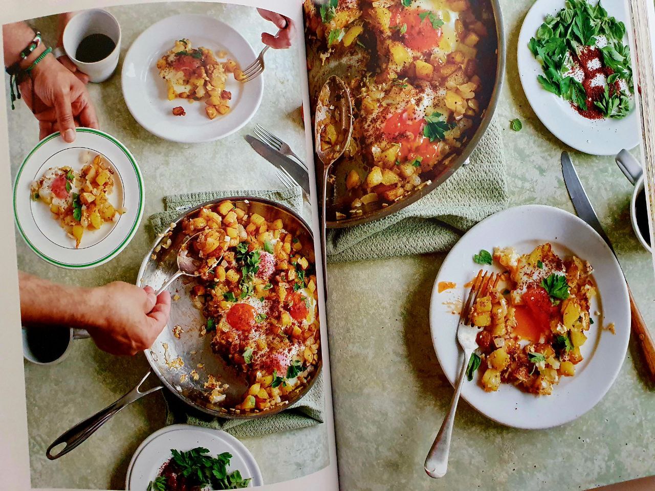 Ich finde, fast jedes Rezept klingt total lecker. Unbedingt ausprobieren möchte ich „Auberginen-M’tabbal“ (Auberginen-Salat mit Tahini-Sauce). Aber auch die „Spargel-Lauch-Galette mit Haselnusskernen“ klingt super. Aus dem Kapitel Brot sehen die „Zwiebelschnecken mit Bockshornklee“ verlockend aus und bei den „Süßspeisen“ könnte ich mich durch alle Rezepte naschen, aber besonders durch die „In der Form gebackenen Brownies mit Tahini, Halwa & Kaffee“ oder die „Schokoladen-Dattel-Riegel“.