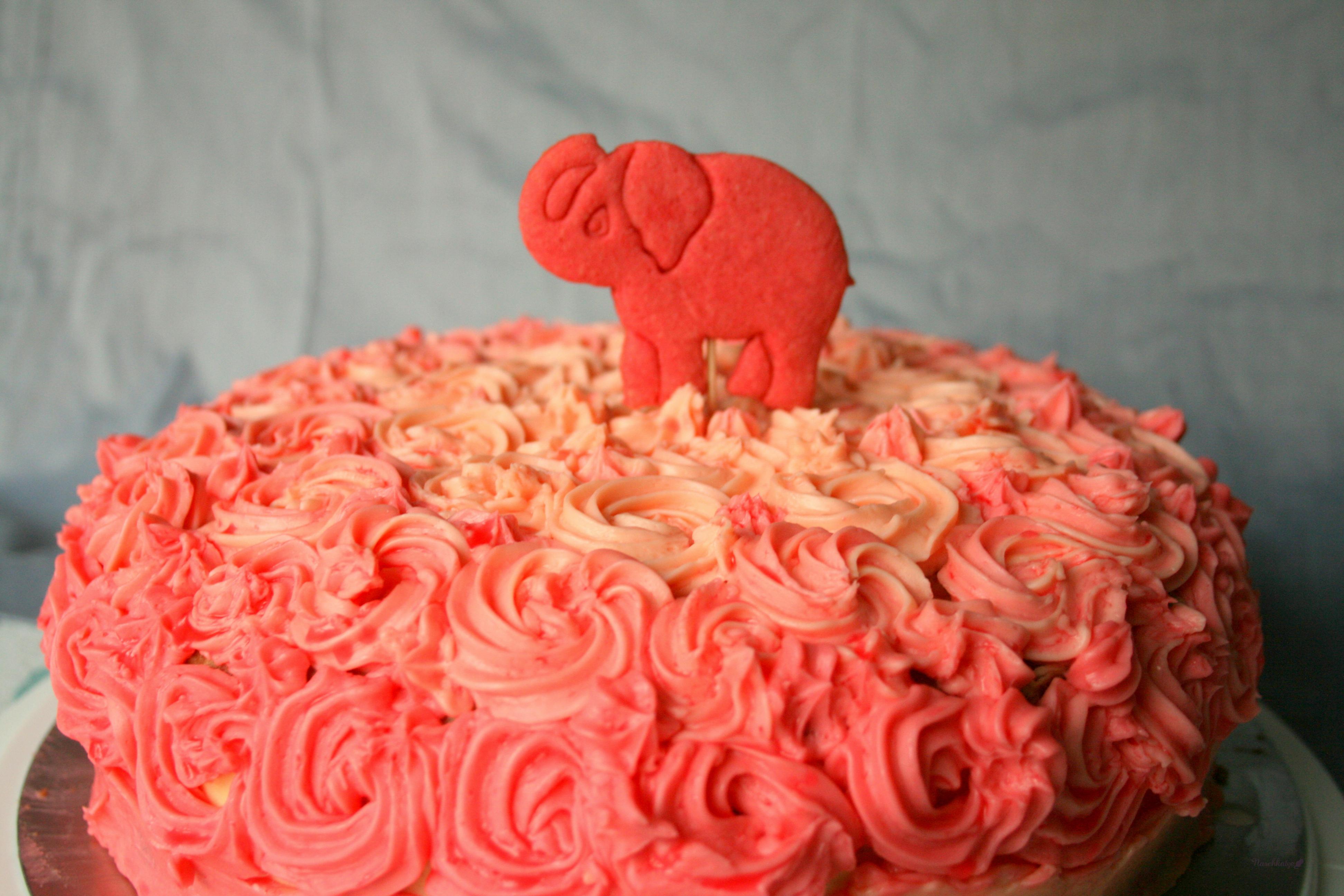 Rosa Röschen-Creme-Torte mit rosa Elefant. Oder: Der Versuch, ein Rezept 1:1 nachzubacken…